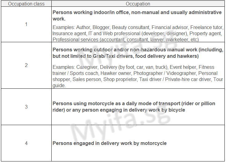 Freelancer CashPlus, underwritten by MSIG, can help to mitigate that financial loss. A freelancer or self-employed can be either one of the following occupation and do check with us if your occupation is not listed here. The premium rates will be based on the occupation class.