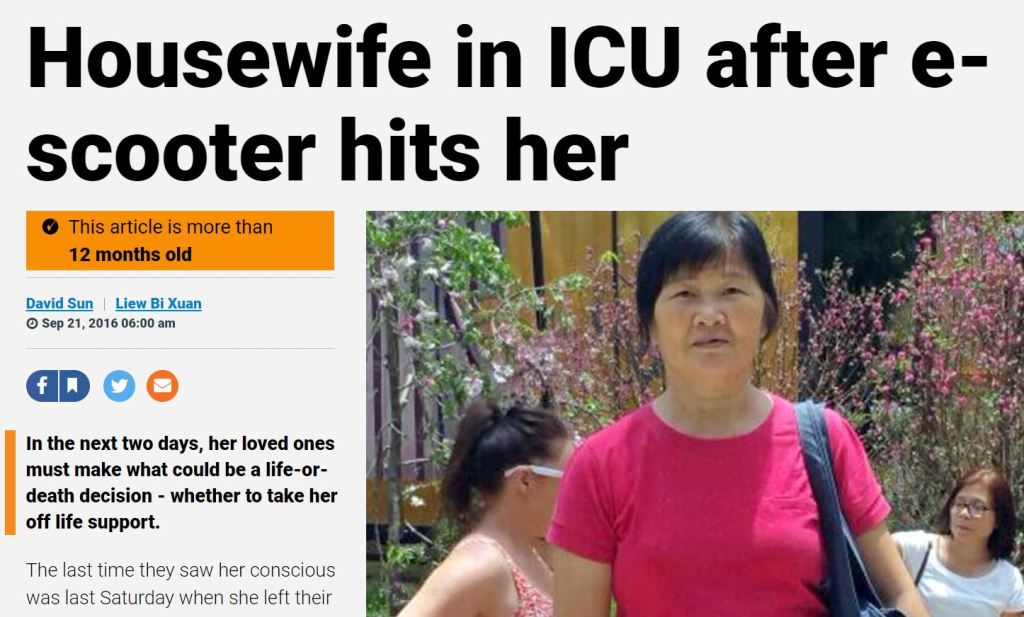 It is not because representative can make more money to sell these insurance but look at the accident of Mdm. Ang Liu Kiow who suffers from brain injury after she got hot by an e-scooter.