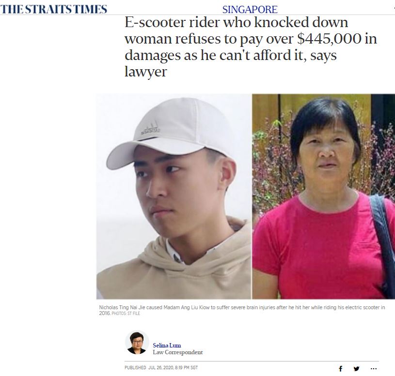 No victim should go thru these stress and, in my humble opinion, it is a joke to walk away with any attempt of trying to compensate the victim. There are also responsible riders or PMD users who read about my article and took their initiative to protect themselves against personal liabilities on these mobility devices.