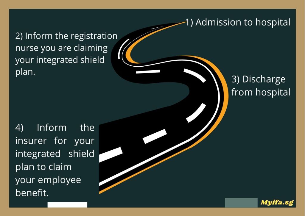 Most people will go with Option B i.e. to claim the EB. This is the proper answer to the question. However, it can be administratively hassle to apply for the Letter of guarantee(LOG) for your treatment as you may have to go through your HR Personnel and submit the LOG to your medical institution. You may also need to pay your bills upfront and submit your bills to the HR Personnel or EB Insurer after your discharge.