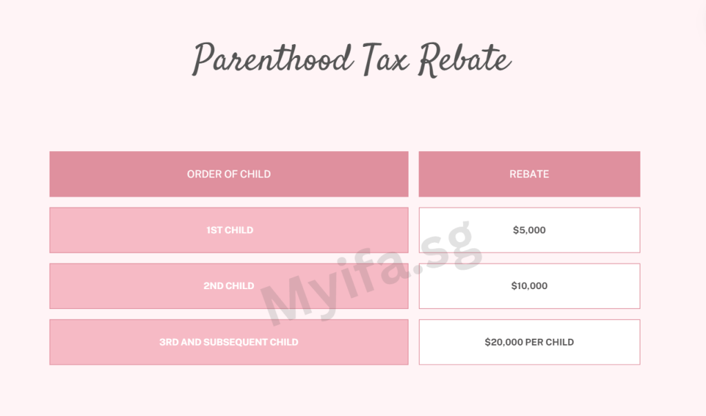 If you are a parent, you may be eligible to claim the Parenthood Tax Rebate .The child must be a Singapore Citizen at the time of birth or within 12 months thereafter. You may share the Parenthood Tax Rebate with your spouse for each qualifying child to offset your respective income tax payable. Any unutilised Parenthood Tax Rebate can be used to offset your income tax payable in subsequent years until the tax rebate is fully utilised.