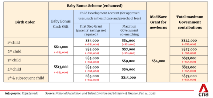 Enhanced Baby Bonus Scheme for eligible Singaporean children born on or after Feb 14, 2023.