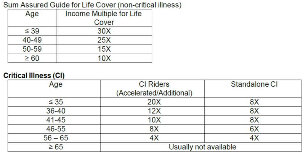This concept is widely used in financial planning and compensation frameworks such as WICA. In fact, MAS released a Basic Financial Planning Guide in 2023 recommending suitable coverage ranges for individuals. The reality is some people may genuinely need more coverage due to family responsibilities. That’s why insurers use financial underwriting guidelines to determine the maximum amount of insurance a person can reasonably buy based on income and financial profile.