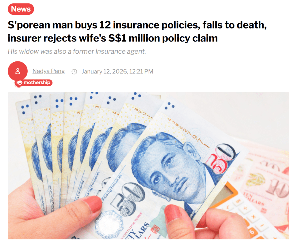 A Singaporean man took up 12 life insurance policies within a short period, with a total coverage of about S$6.9 million, despite earning only around S$75,000 a year. Two years later, he tragically died after falling from the 33rd floor of a building in Australia. The coroner ruled his death accidental.